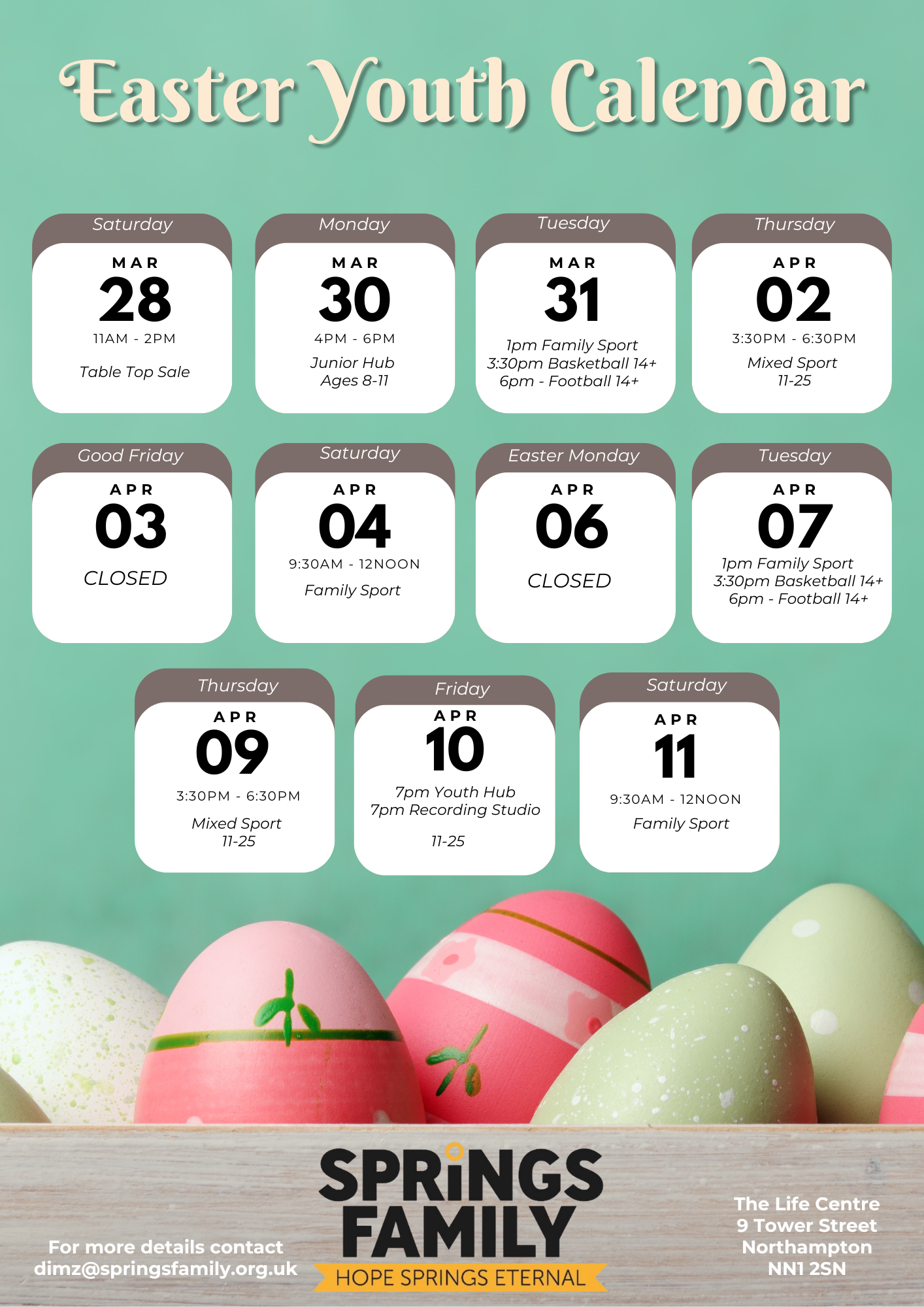 We’ve put together a packed Easter schedule full of activities for young people, families, and the wider community to enjoy. From sports sessions and youth hubs to family activities, there’s something for everyone over the break.