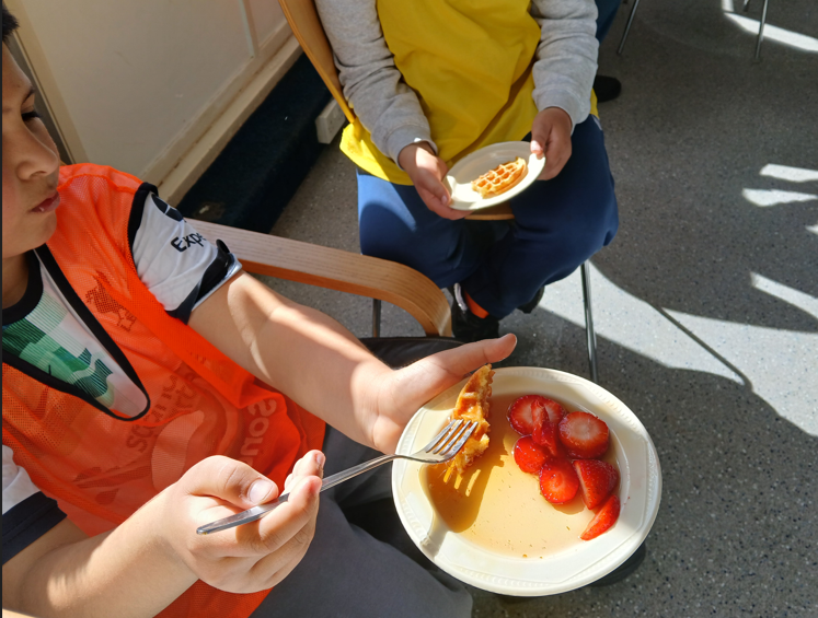 We made amazing pancakes at Community Hub, with some super tasty toppings! – it was the first time making pancakes for some and we all got to take the recipe home to try there too